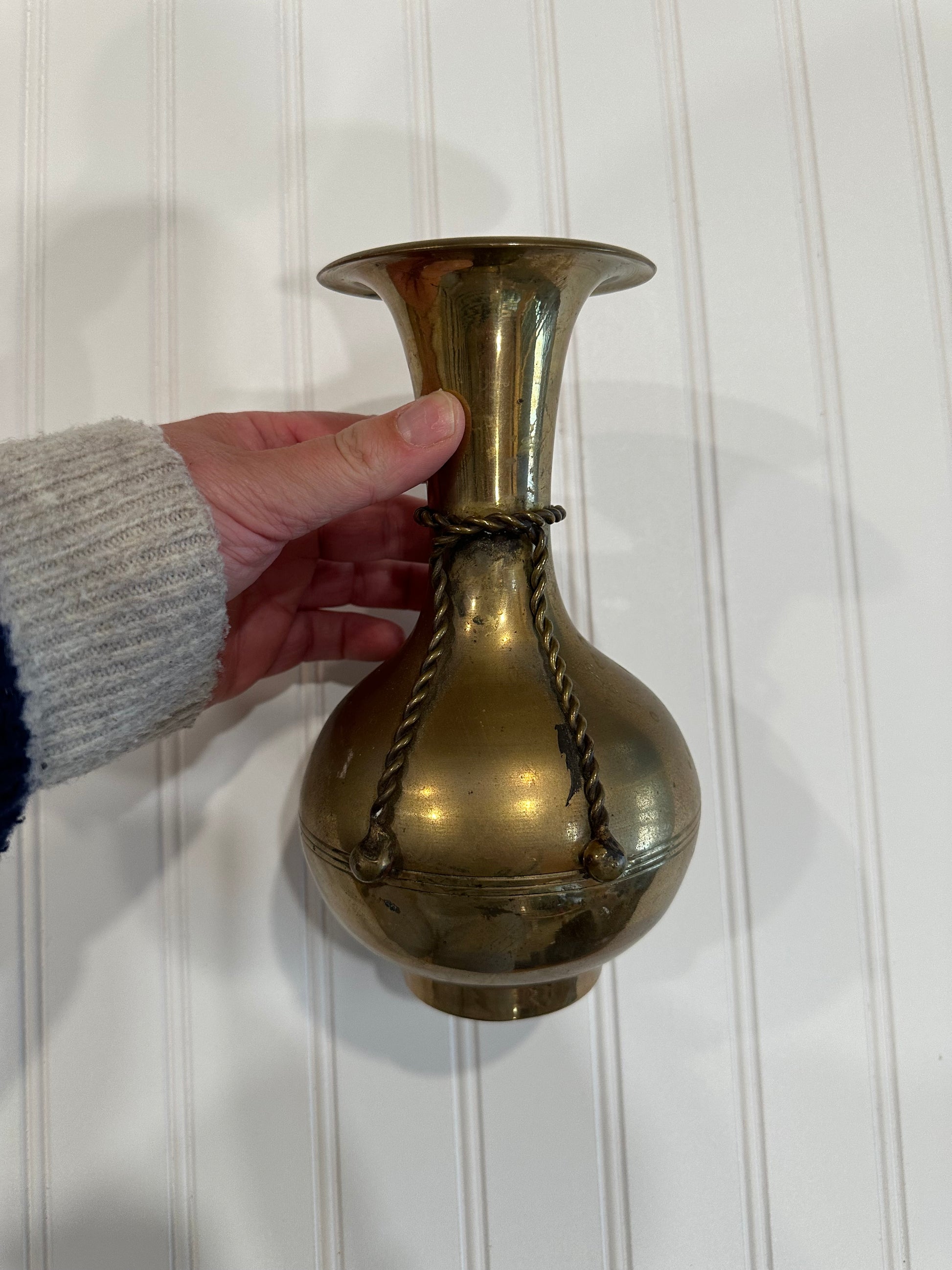 Vintage brass vase with rope
